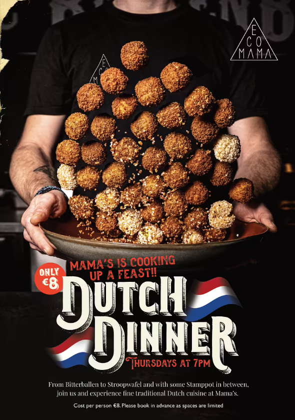 3-course meal: Dutch night with bitterballen/Stampot/Stroopwaffle.